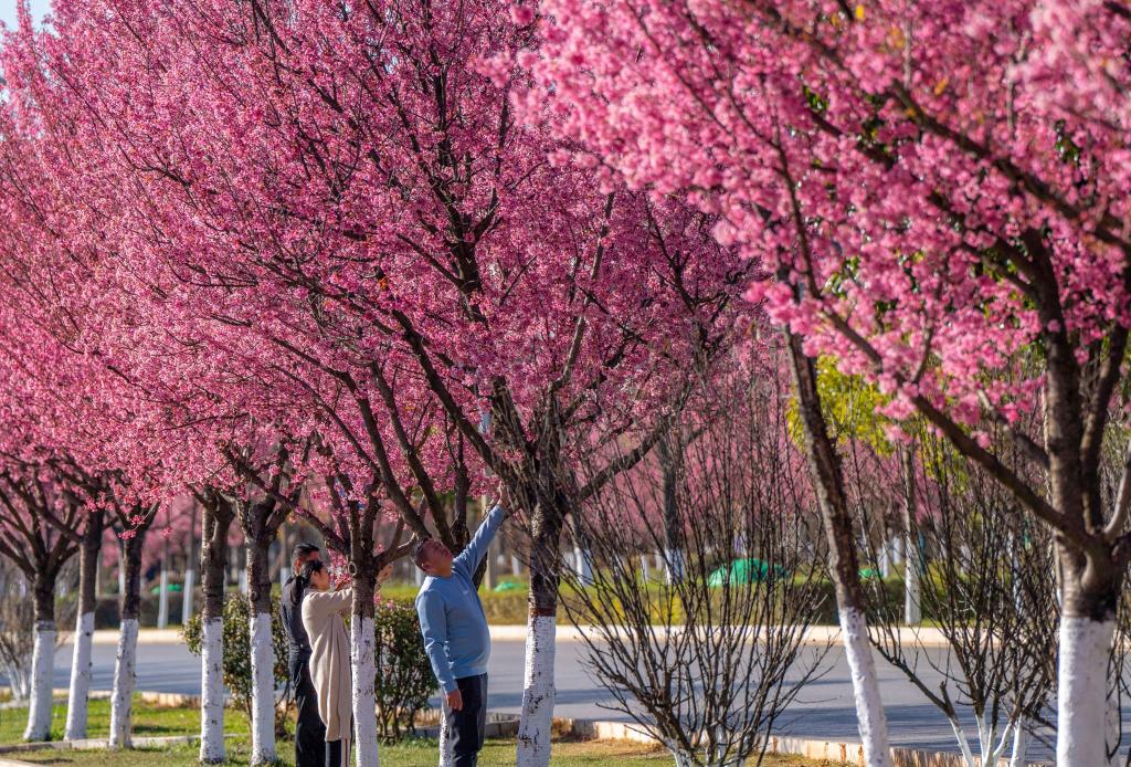 近日,昆明市区的冬樱花绚烂绽放(1月4日摄)。新华社记者胡超 摄