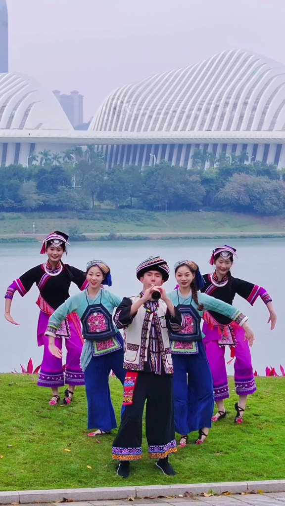 广西青年吹奏民族乐器跳“科目三”。(图片由广西电视台提供)
