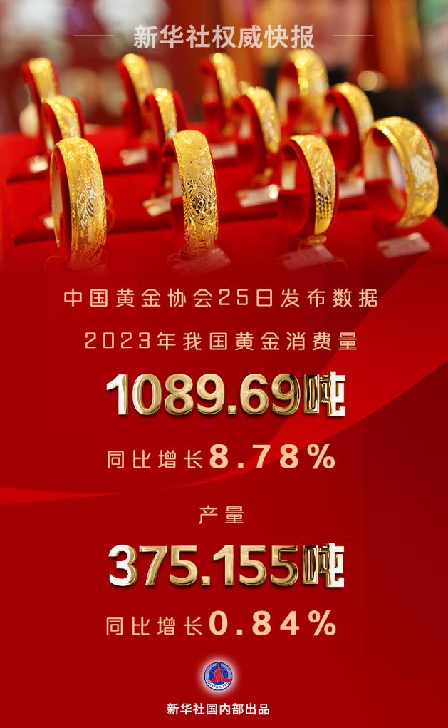 2023年全国黄金消费量1089.69吨,同比增长8.78%