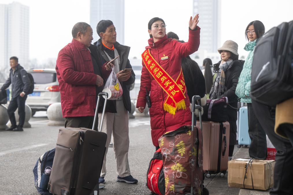2月6日,宜昌东火车站工作人员解答旅客出行问询。新华社记者肖艺九 摄