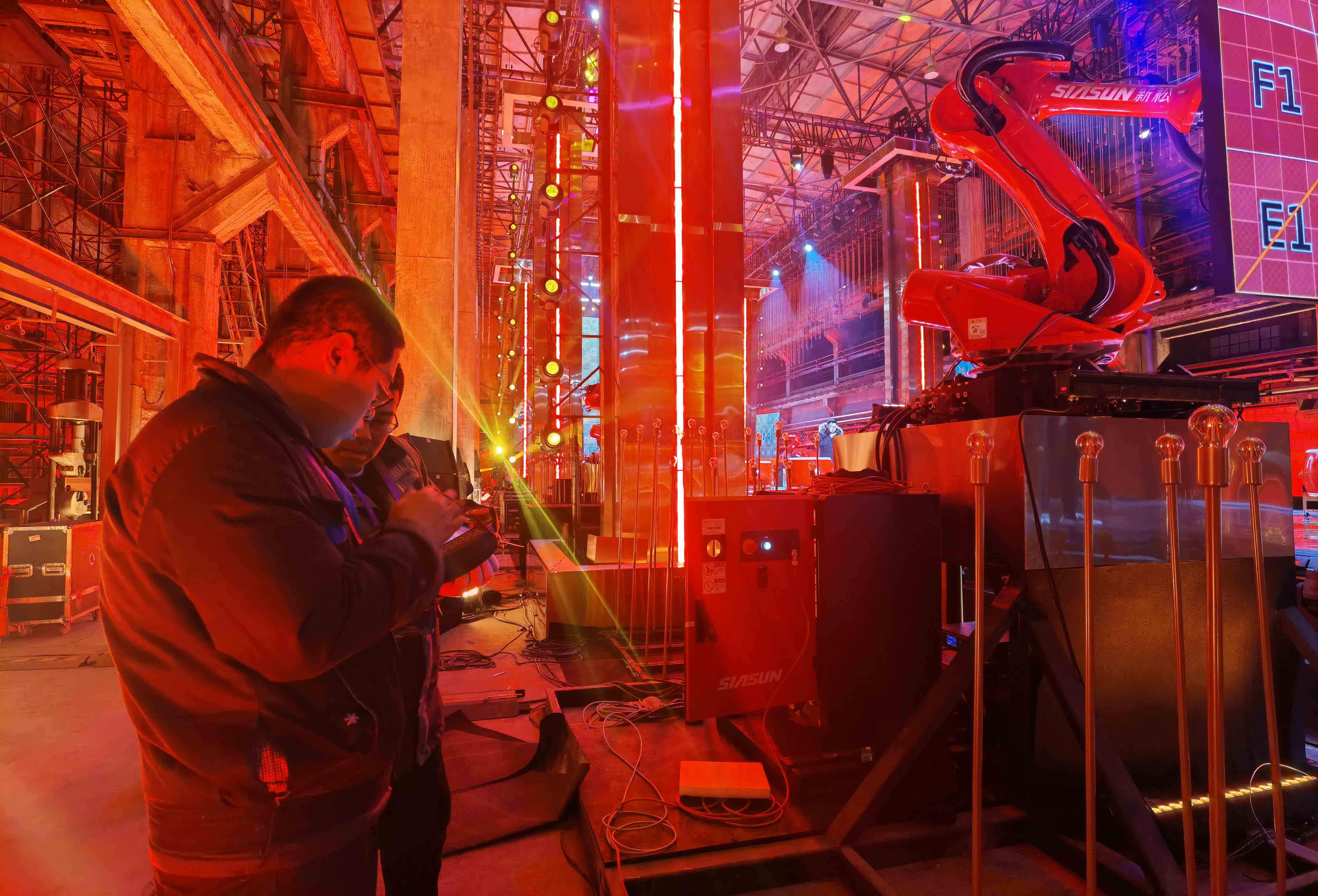 “这次参与表演的节目,综合运用了歌唱演员、舞蹈演员、舞美灯光、机器人等表演元素,同时还要配合现场观众和电视直播的效果,这对机器人动作编排有很大挑战。”赵喜盛一边紧盯着彩排,一边向记者介绍。