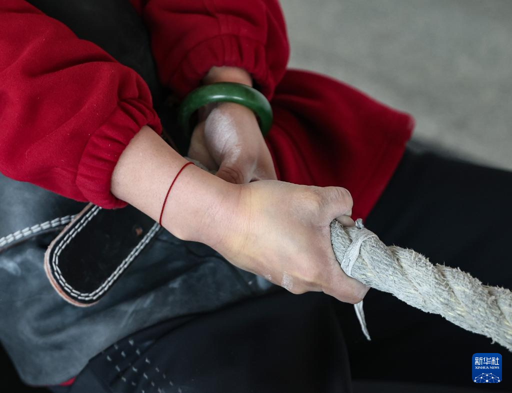 长期的训练,让她们每个人的手掌都经历过从磨出血泡到反复脱皮的循环,曾经细嫩的双手长满了老茧。就连训练用的麻绳上,都留有被汗水和血水浸渍的痕迹。