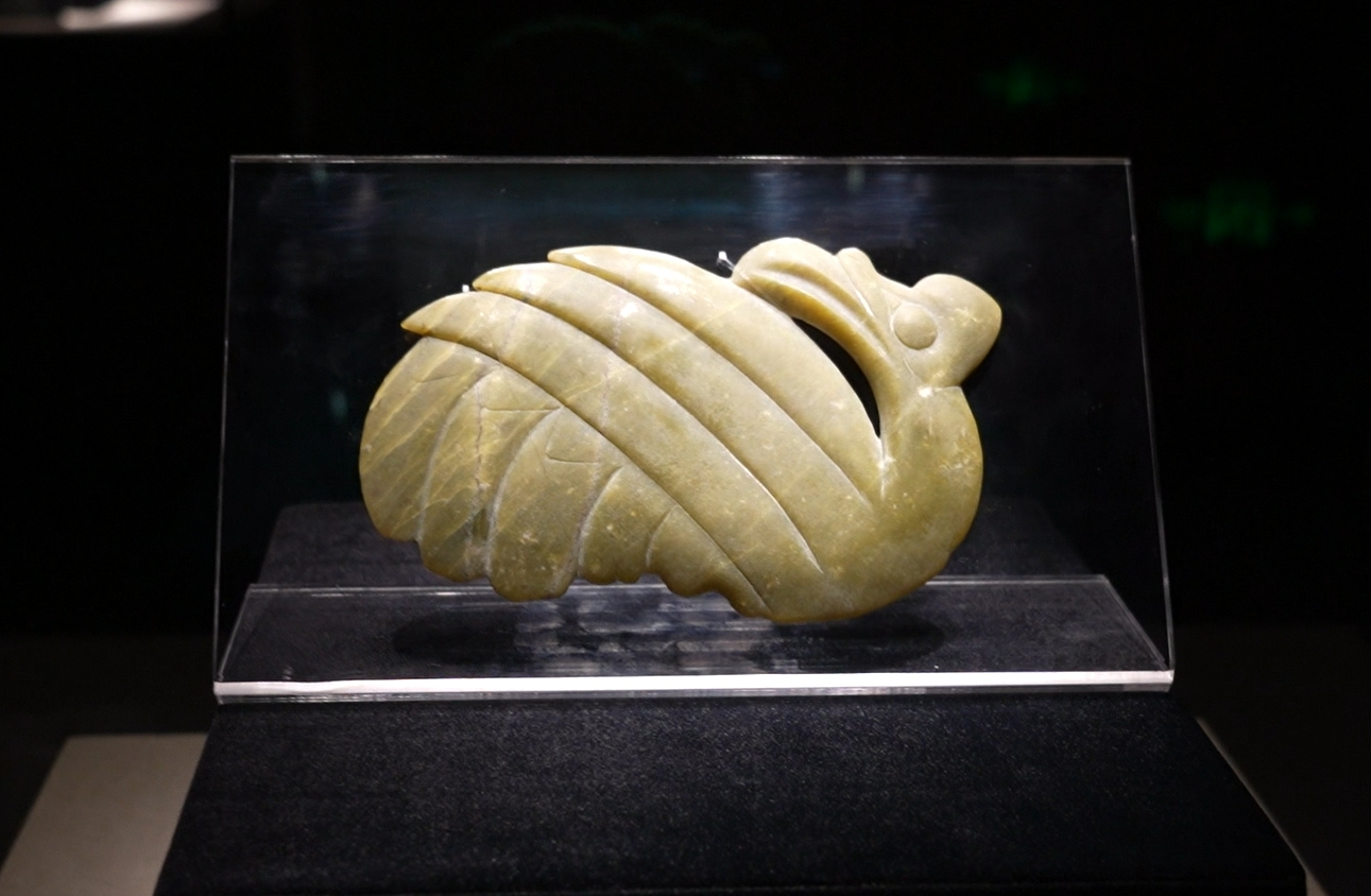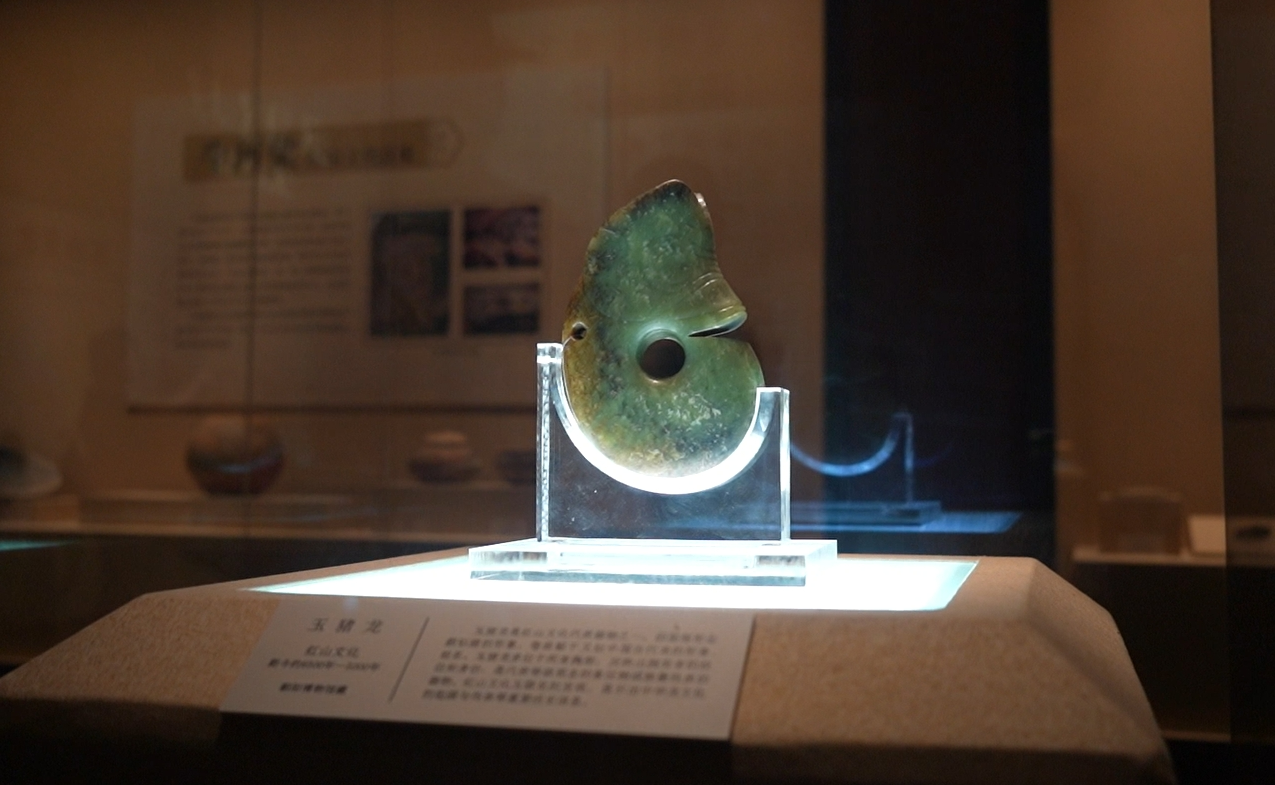 红山文化玉猪龙,可能是先民族徽(央广网记者 李子平 摄)