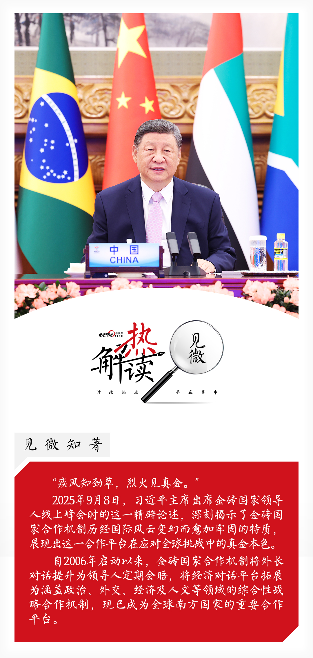热解读9月8日晚,习近平主席在北京以视频方式出席金砖国家领导人线上峰会并发表重要讲话。