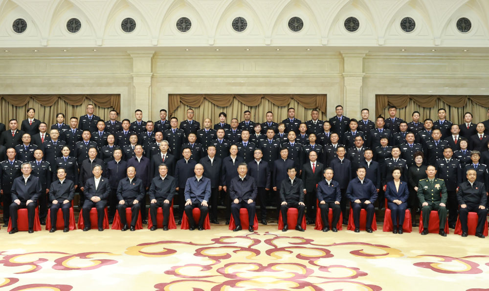 9月23日下午,中共中央总书记、国家主席、中央军委主席习近平在乌鲁木齐亲切接见新疆维吾尔自治区政法干警代表,并同大家合影留念。新华社记者 丁林 摄
