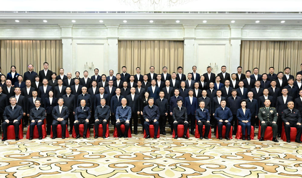 9月23日下午,中共中央总书记、国家主席、中央军委主席习近平在乌鲁木齐亲切接见新疆生产建设兵团领导班子成员及有关方面负责同志,并同大家合影留念。 新华社记者 申宏 摄