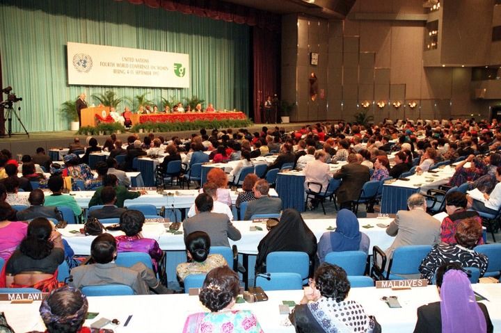 1995年9月4日,联合国第四次世界妇女大会在中国北京召开。会议通过了具有里程碑意义的《北京宣言》和《行动纲领》。新华社发