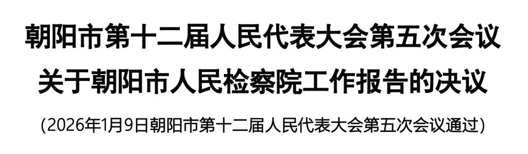 朝阳市第十二届人民代表大会第五次会议听取并审议了市人民检察院检察长刘金龙所作的《朝阳市人民检察院工作报告》。会议充分肯定市人民检察院过去一年的工作,同意报告提出的2026年工作安排,决定批准这个报告。