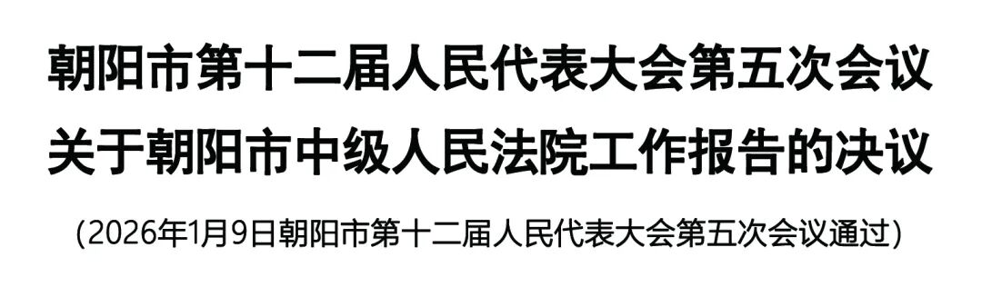 朝阳市第十二届人民代表大会第五次会议听取并审议了市中级人民法院院长孙浩所作的《朝阳市中级人民法院工作报告》。会议充分肯定市中级人民法院过去一年的工作,同意报告提出的2026年工作安排,决定批准这个报告。