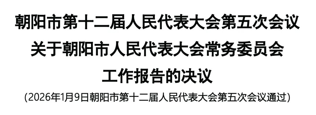 朝阳市第十二届人民代表大会第五次会议听取并审议了市人大常委会主任谢卫东所作的《朝阳市人民代表大会常务委员会工作报告》。会议充分肯定市人大常委会过去一年的工作,同意报告提出的2026年工作安排,决定批准这个报告。