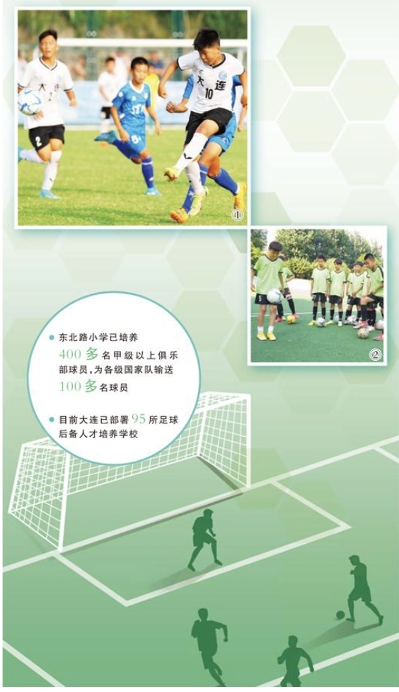 大连市委教育工委专职委员杨莹表示:“近年来,大连市教育局始终以足球育人为本,坚持‘两手抓’,一手抓普及,面向全体学生;一手抓提高,面向精英力量。”在普及层面,大连把足球课纳入中小学体育必修课,每年搞班级联赛,强健青少年体魄、锤炼意志品质;在提高层面,遴选一批足球特色校,贯通“一条龙”培养机制,组建市级青少年足球梯队,请退役球员、专业教练带训,从娃娃里选出好苗子、培养好苗子。多项举措推动,改革成果逐步显现。近5年,仅沙河口区就为各级国家队累计输送球员21名,80余人走上职业足球道路。