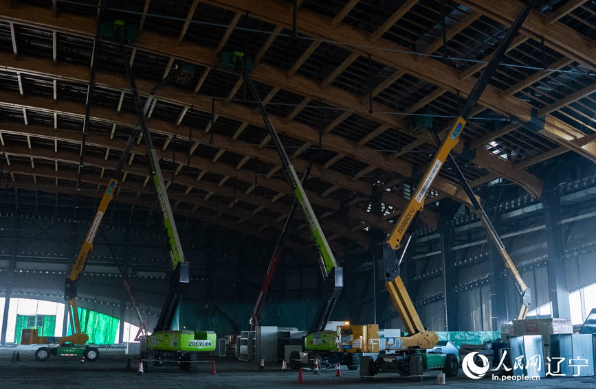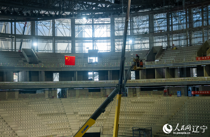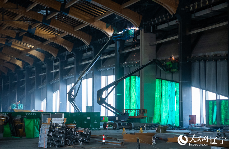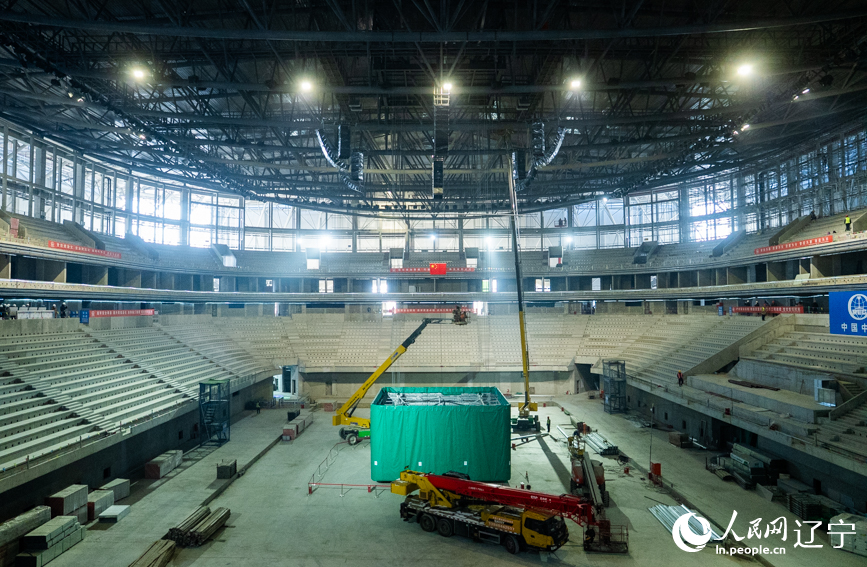 沈阳王家湾冰上运动中心综合馆内部施工中。人民网记者 邱宇哲摄