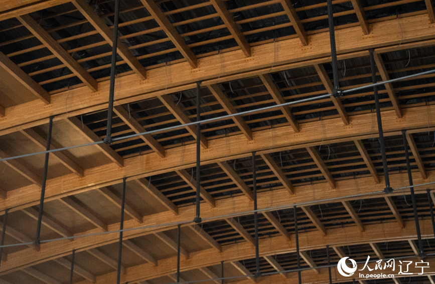 沈阳王家湾冰上运动中心综合馆配备大跨度鱼腹式空间桁架结构,具备冰篮转换功能。人民网记者 邱宇哲摄