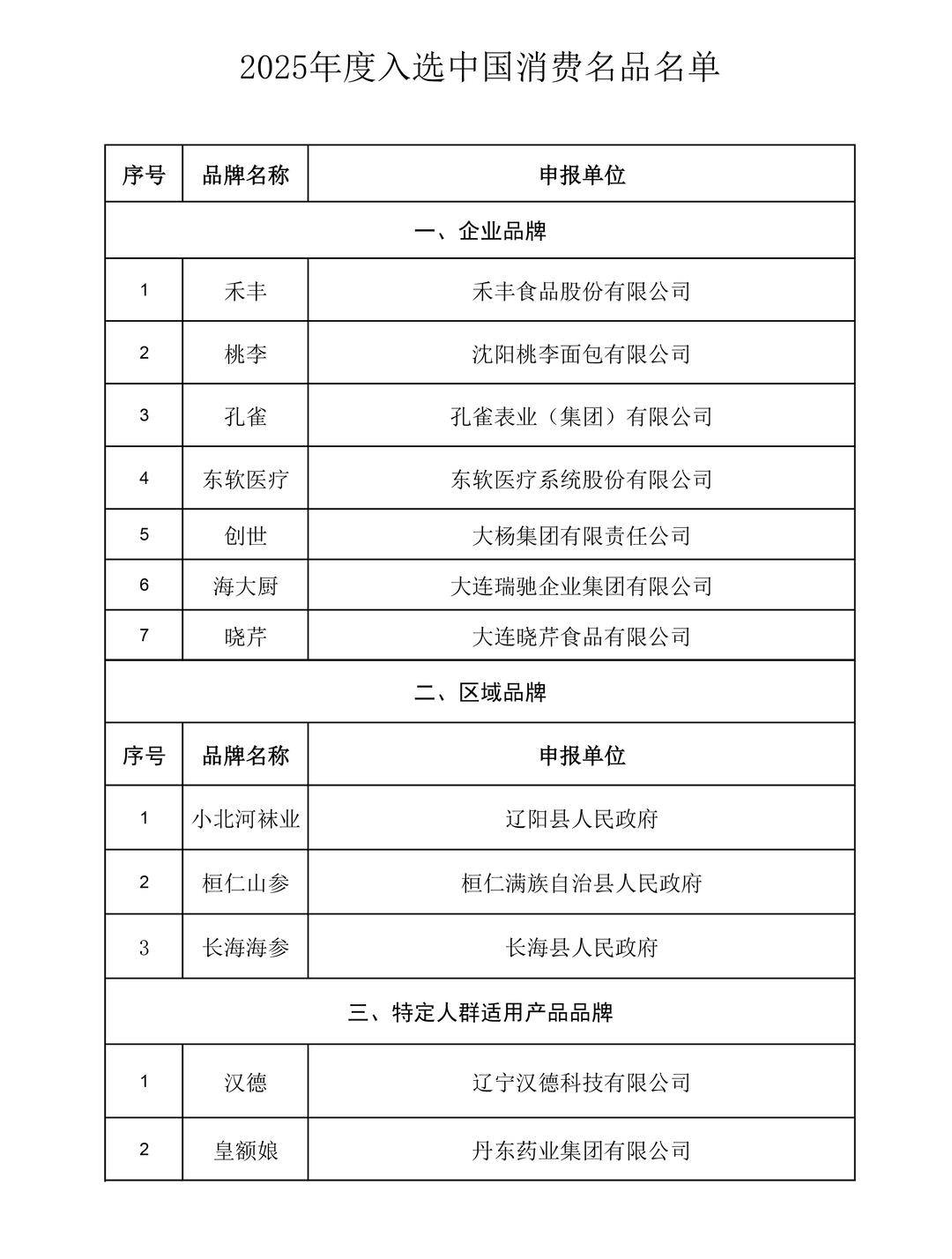 近日,工业和信息化部公布2025年度中国消费名品名单,全国共276个品牌入选,其中我省12个品牌成功上榜,覆盖食品、轻工、医药、纺织等多个行业。禾丰、桃李、孔雀、东软医疗、创世、海大厨、晓芹7个品牌入选企业品牌“时代优品”类别;小北河袜业、桓仁山参、长海海参3个品牌入选区域品牌类别;汉德、皇额娘则作为特定人群适用产品品牌,分别在适老化与妇幼产品领域获得认可。