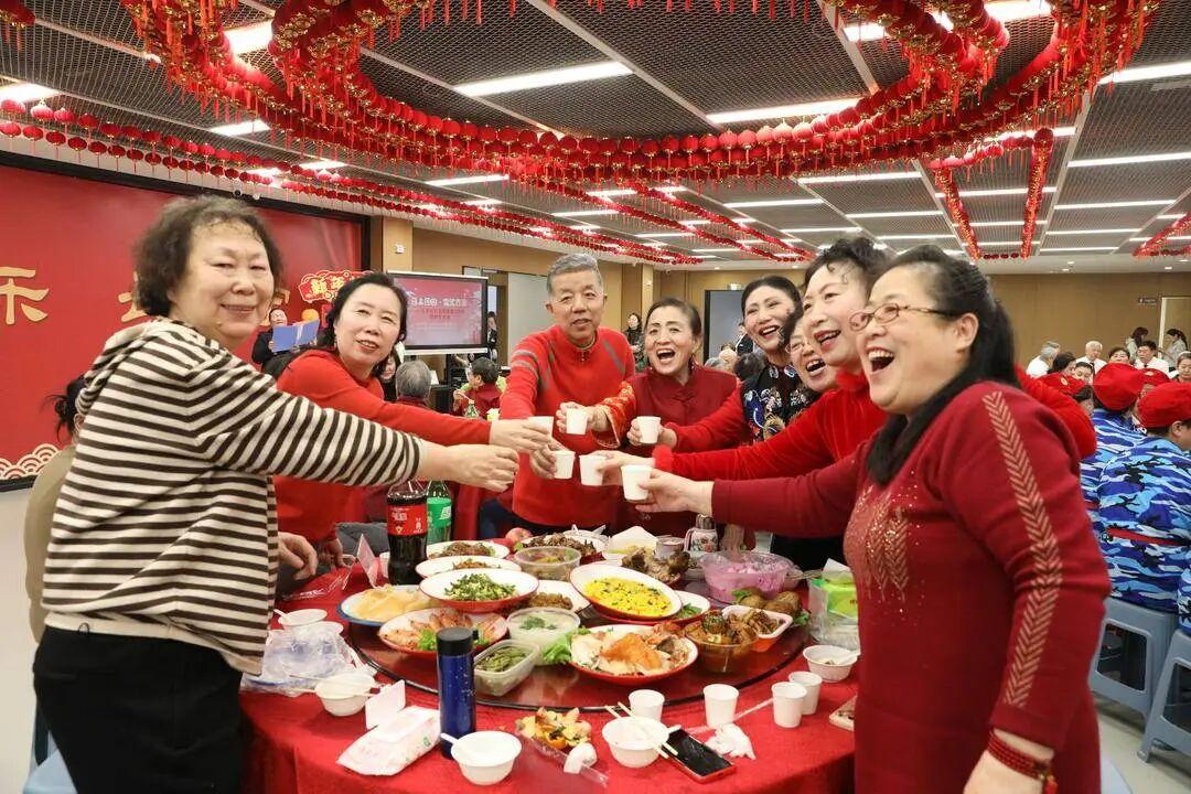上午9点,逯军端着热气腾腾的菜肴走出家门,前往百家宴现场。社区里张灯结彩,红灯笼随风摇曳,居民们剪的窗花、编的中国结装点的楼道喜气洋洋。逯军看着刷成暖红色的居民楼对记者说: