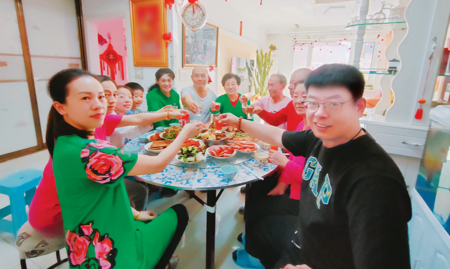 下午1点多,家庭聚会正式开席,一家十多口人围坐在一起,边吃边聊。