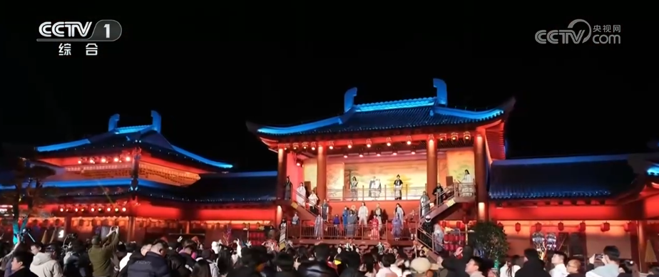 各大景区也迎来客流高峰。在武当山脚下的“武当一梦”园区,演艺秀融合光影科技与舞台艺术,将太极神韵、武当武术化作行云流水的艺术盛宴。游客在园区内还可以融入剧情互动,品尝特色美食。夜幕降临,无人机光影秀点亮夜空,传递新春祝福。