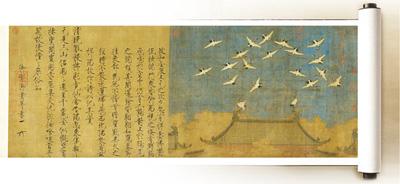 北宋政和二年(公元1112年)正月十六,时值上元节次夕,都城汴京张灯结彩,烟火升腾。皇宫正门宣德门的城门上祥云缭绕,20只鹤翩然而至,两只停驻于宣德门屋顶两端的鸱尾上,其他18只在天空中缓慢盘旋,颇有节奏感。值而立之年的宋徽宗赵佶,用画作将这个场景定格下来,并以文字记录,让我们得以在900多年后仍能窥见当时的情景。这幅传世佳作就是《瑞鹤图》,如今是辽宁省博物馆“镇馆之宝”之一。