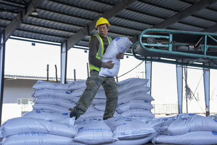 眼下,东北进入备耕关键期。在产粮大县吉林省农安县,吉林乾溢农业发展专业合作社联合社的化肥加工厂内,工人们正将一袋袋化肥装车,运往各村农民合作社。