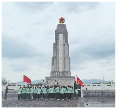 学生在于都烈士纪念园的革命烈士纪念碑前开展纪念活动。 本报记者 杨颜菲摄