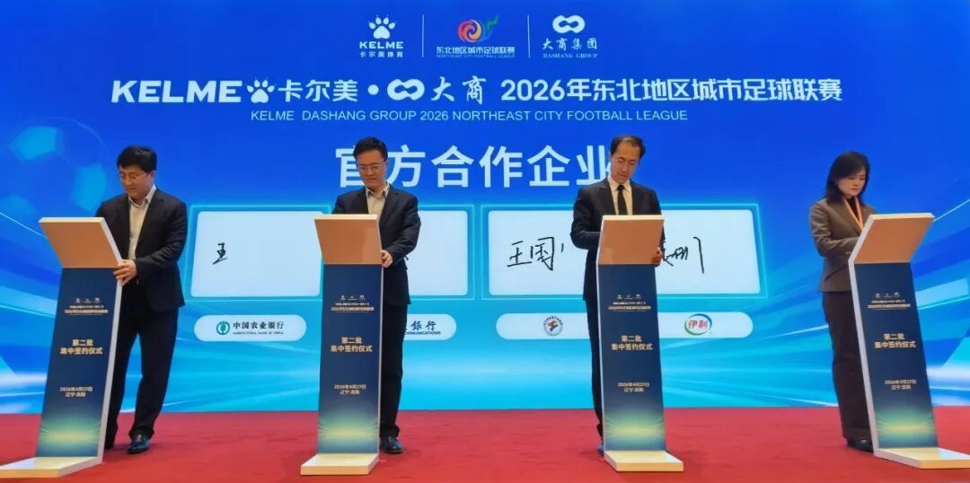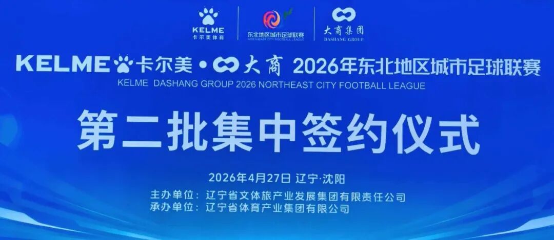 4月27日,“卡尔美·大商 东北超”第二批赞助商集中签约暨授牌仪式在沈阳举行,14家涵盖金融、食品、饮品、电梯、文旅等领域的企业正式携手“东北超”,以实际行动助力区域文体产业发展,为东北全面振兴注入体育动能。本次集中签约标志着“东北超”赛事市场化、规范化发展又迈出坚实一步,体产协同共促东北文体事业高质量发展的合力持续凝聚。